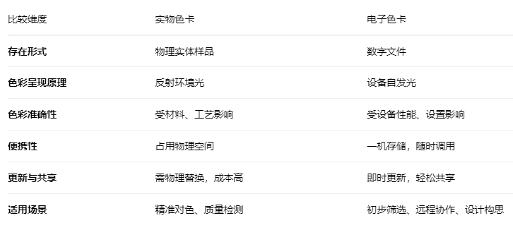 以下表格清晰展示了兩種色卡的主要特性對(duì)比: