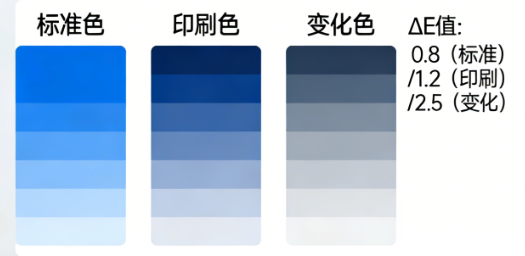 測(cè)量每一被測(cè)印張的CIE LAB的L*、a*、b*數(shù)據(jù)并計(jì)算相對(duì)于批量產(chǎn)品平均值的差值△L*、Sa"和△b*,計(jì)算△L*、la"和△b*的平均值以及標(biāo)準(zhǔn)偏差,然后將標(biāo)準(zhǔn)偏差乘以1.96,確定95%置信度范圍(即 95%樣品所處范圍)。最后計(jì)算每一平均值及置信度范圍的CIE LAB色差(△E』)。由平均值得到的色差表示印品與付印樣的色偏差,由置信度得到的色差表示批量印品之間的顏色變化。