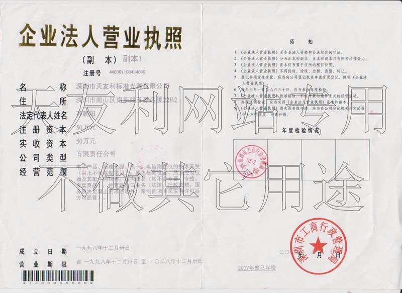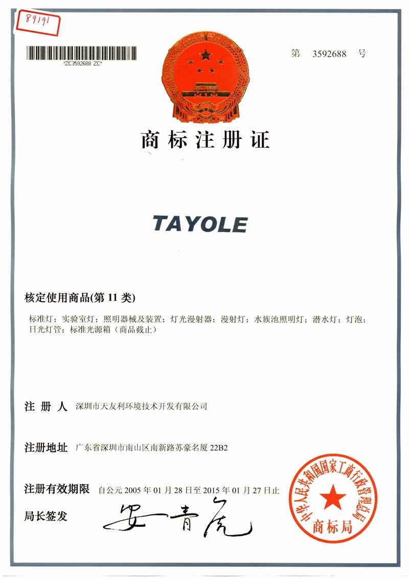 深圳市天友利標準光源有限公司、深圳市天利泰路科技有限公司(生產(chǎn)廠家)成立于1998年12月30日,先后注冊了商標:TILO、TAYOLE和天友利等,并在香港也成立了公司:卡羅卡超香港有限公司。